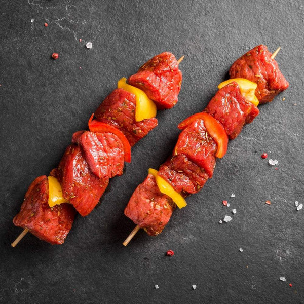 Nous vous proposons des brochettes de bœuf de qualité supérieure rigoureusement mariné Tex Mex (non piquant) ou Pirry Pirry (piquant) pour régaler vos grillades.