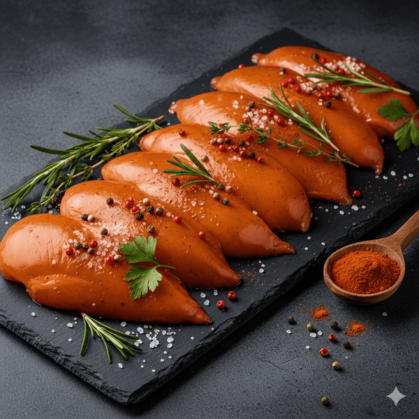 Lyon Boucherie vous propose des tranches d'escalopes de poulets mariné.